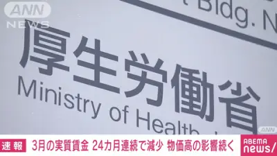【悲報】実質賃金、24カ月連続マイナス…ありがとう自民党