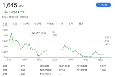【悲報】ワイカバー株主、2ヶ月で60万損失