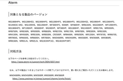 【悲報】NECのルーターAtermシリーズに脆弱性「対処及び買い替えをご検討ください」