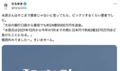【悲報】水原一平、大谷から盗んだのは7億円じゃなく24.5億円以上だった