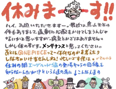【悲報】尾田栄一郎「3週間休みます。ONE PIECEって一体何なのかを考えたりしなきゃいけません」