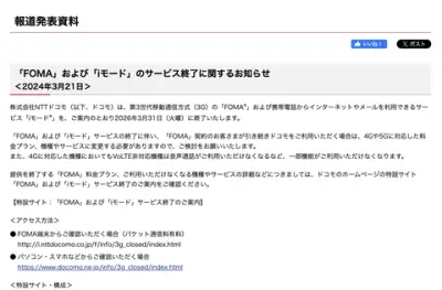 ドコモ「FOMAおよびiモードの提供を終了します」