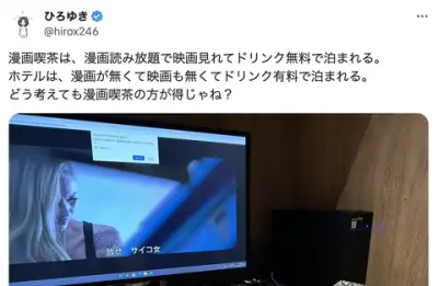 【悲報】ひろゆき「ホテルより漫画喫茶のほうが得じゃね?漫画も読めるし飲み物もあるしビジネスクラスより広いんですよ」