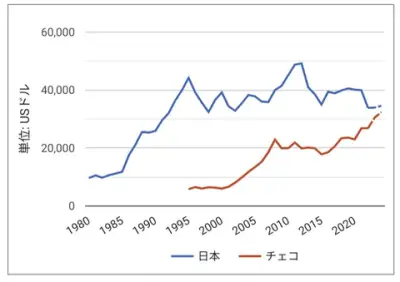【悲報】1995年の日本「一人当たりGDPはチェコの8倍です」2024年の日本「チェコとほぼ変わりません」