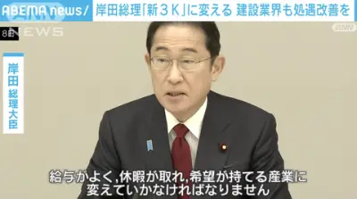 岸田首相「建設業を新3K、給料がよく、休暇が取れ、希望が持てる産業に変えていかなければならない」5%超の賃上げ要請