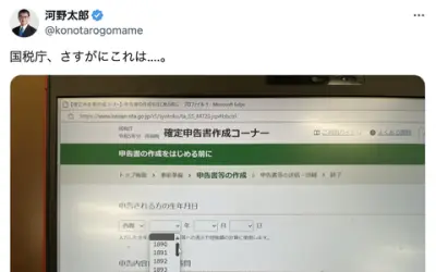 河野太郎デジタル相、国税庁の確定申告サイトの仕様に苦言を呈す「さすがにこれは…」