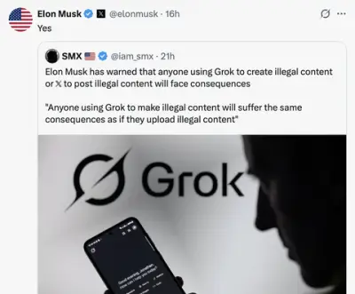 【悲報】イーロンマスク「Grokで違法なコンテンツを投稿する者は結果を覚悟しなければならない」