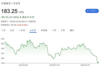 【悲報】EV大手テスラの株価12%下落、一瞬で時価総額800億ドルが吹き飛ぶ