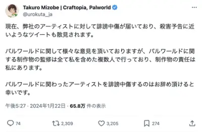 【悲報】パルワールド開発陣、殺害予告されてしまう