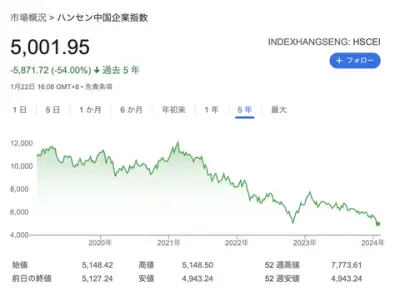 【悲報】中国株が下げ止まらず、2005年の安値近くまで落ち込む