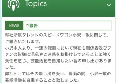 【悲報】スピードワゴン小沢、芸能活動自粛