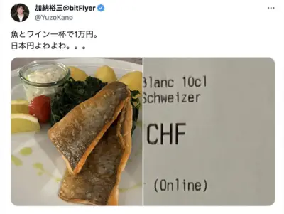 【正論】ビットフライヤー創業者「スイスで魚とワイン一杯頼んだら1万円。日本円よわよわw」