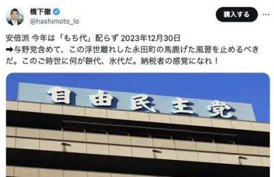 【正論】橋下徹「与野党含めて馬鹿げた風習を止めるべき。このご時世に何が餅代、氷代だ。納税者の感覚になれ」