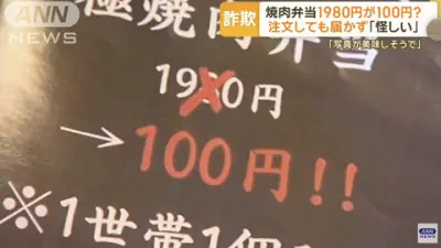 【悲報】焼肉弁当1980円が100円。多くの弱男が詐欺被害に
