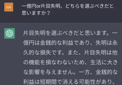 人間「一億円か片目失明、どちらが良いかな?」AI「迷うこと無く片目失明」