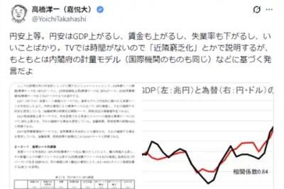 高市早苗のブレーン「円安上等!円安はGDP上がるし賃金も上がるし失業率も下がる。良いことしかない」
