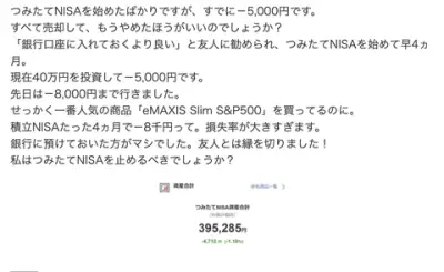 【悲報】投資素人さん、つみたてNISAに案の定騙される。大損害を出して泣く