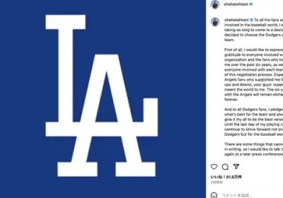 【速報】大谷翔平(29)、ドジャースと史上最高額10年総額7億ドル(1015億円)で契約合意
