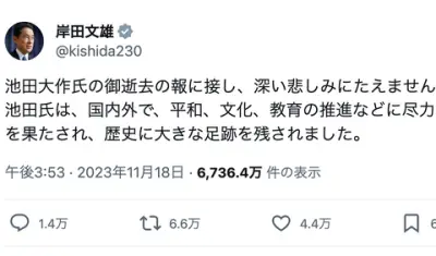 【悲報】自民党「岸田首相はローマ教皇にも弔意示した。池田大作氏に弔意は問題ない」