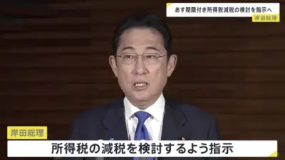 岸田首相、税収増を国民に還元するために期限付き所得減税の検討を与党に指示へ