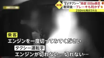 【悲報】EVタクシーが時速188kmで暴走し衝突...ブレーキ効かず勝手に急加速