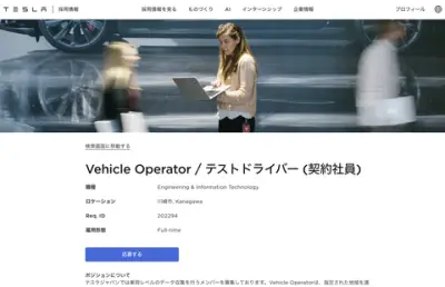 【朗報】テスラが日本でテストドライバーを募集。月給30万円から(最高年収999万円)
