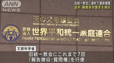 日本政府、旧統一教会への解散命令を請求へ。「過料」を科すことでも最終調整
