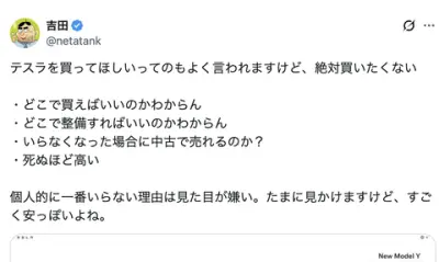 【正論】有名YouTuber「テスラなんて絶対買いたくない!理由がこれ!」