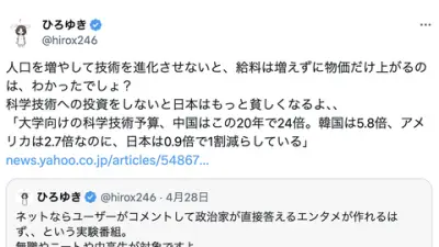 ひろゆき「科学技術への投資をしないと日本はもっと貧しくなります」