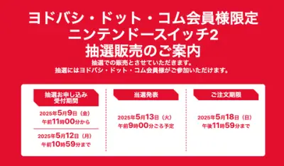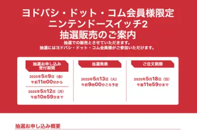 【朗報】ヨドバシさん、ゆるゆるの条件で「Switch2」抽選販売を実施へ