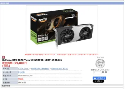 【速報】RTX5070、10万円切りが発見される