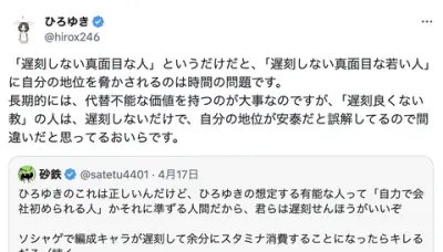 ひろゆき「『遅刻良くない教』の人は遅刻しないだけで自分の地位が安泰だと誤解してる」