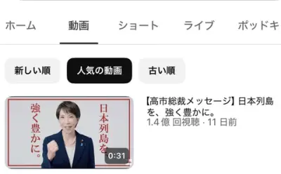 【悲報】高市早苗のYouTube動画、1.4億再生突破。日本国内ではHIKAKIN、アンパンマンに並ぶ