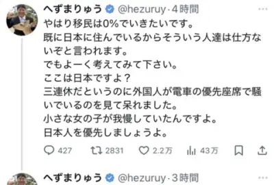 【衝撃】へずまりゅう「移民は0%でいきたいです。日本人を優先しましょうよ」 →5万いいね