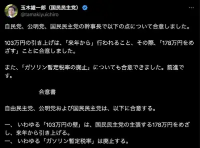【悲報】自民・宮沢税調会長、103万円の壁めぐる3党幹事長合意に不満「釈然としない」
