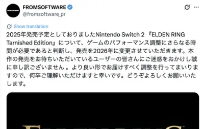 【悲報】Switch2版 エルデンリング、発売延期