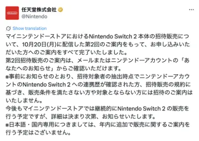 【朗報】Switch2、欲しい人全員に行き渡った模様。任天堂「招待販売の案内をすべて完了しました」