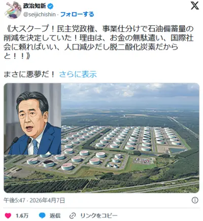 【悲報】 悪夢の民主党政権、事業仕分けで石油備蓄を削減してた ここに来てボディーブローのように
