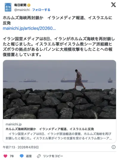 【国際】ホルムズ海峡再封鎖か イランメディア報道、イスラエルに反発