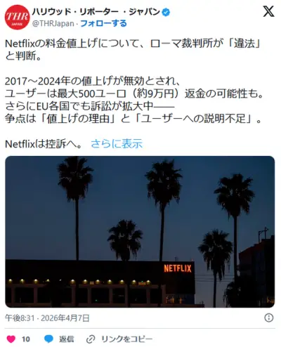 【欧州】Netflixの値上げは違法、ローマ裁判所が判断――EUで訴訟が拡大