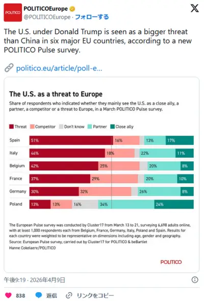 【正論】EU🇪🇺「もはや中国よりアメリカが世界の脅威」
