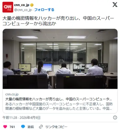 大量の機密情報をハッカーが売り出し😎中国のスーパーコンピューターから流出か