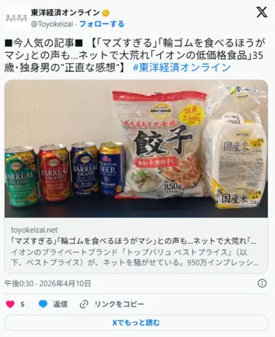 【トップバリュ ベストプライス】酷評続き「イオンの低価格食品」本当にマズイのか 新潟県魚沼の水で炊き上げたブレンド米など