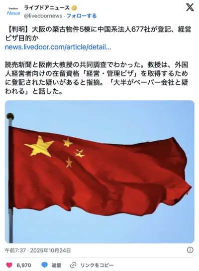 大阪の築古物件5棟に中国系法人677社が登記、経営ビザ目的か…「大半がペーパー会社の疑い」