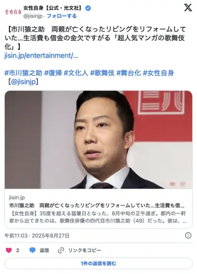 【芸能】市川猿之助 両親が亡くなったリビングをリフォームしていた… 生活費も借金の金欠ですがる「鬼滅の刃の歌舞伎化」