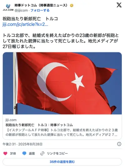 結婚式の祝砲(実弾)に23歳の新郎が被弾して死亡 新婦側の親戚である47歳の女を逮捕