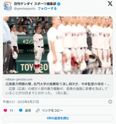 【悲報】広陵野球部「助けて!3年生達の大学推薦が内定取り消しされまくってるの……」