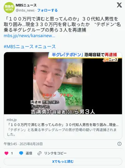 【大阪】「100万円で済むと思ってんのか」男性から330万円を脅し取ったか「テポドン」の男ら3人再逮捕