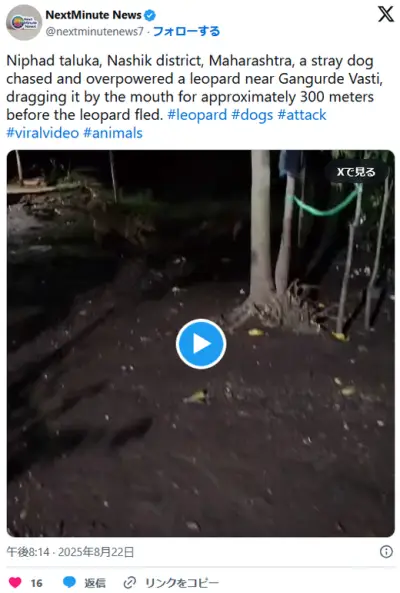 野良犬がヒョウを襲って圧勝、咥えて300m引きずり回す