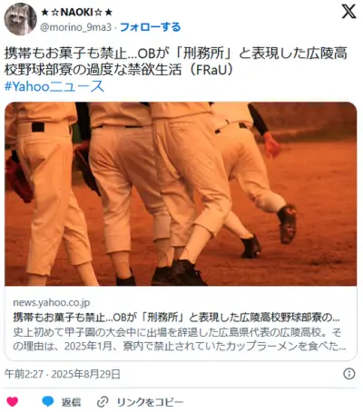 携帯もお菓子も禁止…OBが「刑務所」と表現した広陵高校野球部寮の過度な禁欲生活